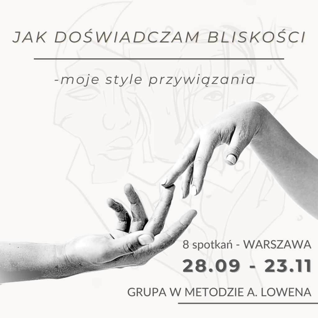 Powrót do Ciała – Piątki z Lowenem | grupa otwartaFUNDAMENTY ODDECHUGRUPA ĆWICZENIOWA W METODZIE A. LOWENA “Ucieleśnij się!”Warstwa po warstwie – cykl warsztatów Metodą LowenaOprzyj się, MAMO! Weekendowy warsztat Pracy z ciałem, Emocjam, Krąg kobiet, RelaksacjaJak doświadczam BLISKOŚCI – moje style przywiązania. Popołudniowa grupa w metodzie Alexandra LowenaNie musisz wszystkiego! Weekendowe warsztaty w metodzie Alexandra LowenaWarsztat pracy z ciałem dla par „W tandemie”W rytmie mojego serca – jednodniowy warsztat metodą Lowena123456